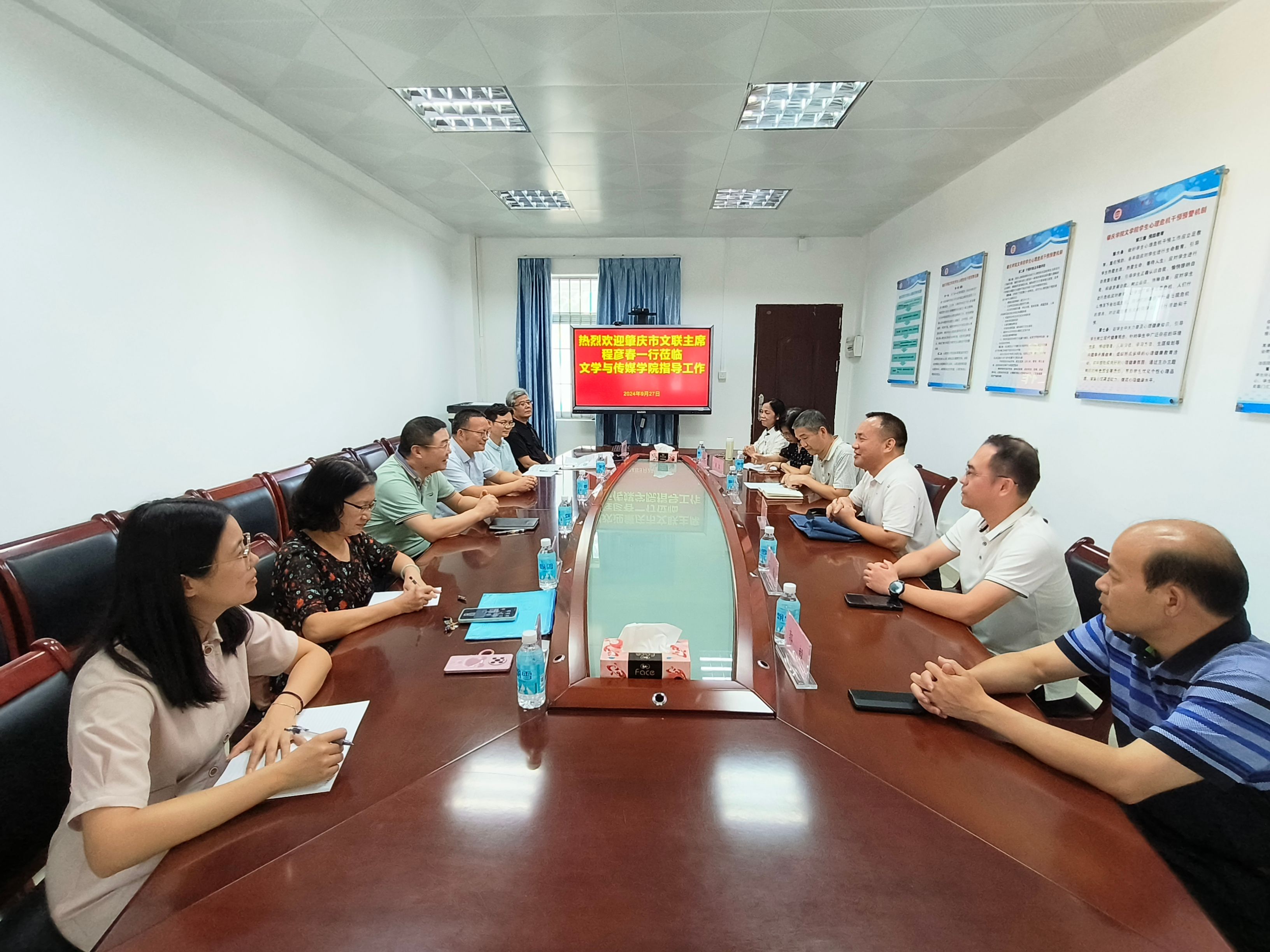 本网讯 9月27日,肇庆市文联党组书记、主席程彦春莅临伟德国际1946亚洲版调研,会议由伟德国际1946亚洲版教授、市文艺评论家协会主席黎保荣主持。