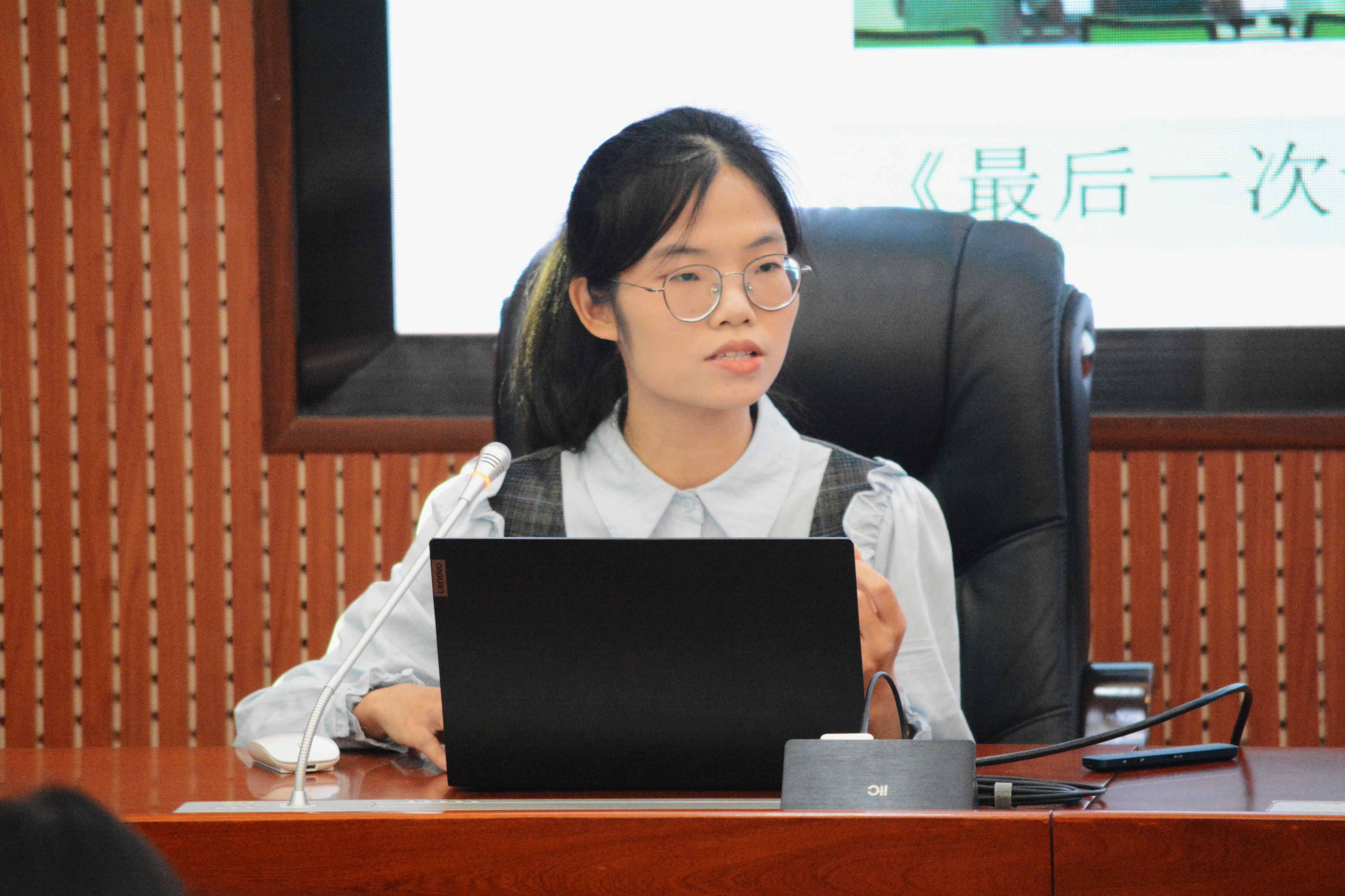 陈广趣回顾7个月的备赛参赛情况,并畅谈认识体会。她以“坚持”和“接受”为关键词,介绍了自己克服紧张与表达障碍,在决赛中答辩表现出色的过程和细节,鼓励同学们在比赛与人生道路上保持此态度。李馨馨结合自身经历介绍了初赛和决赛的点滴,强调重视文体文本、强化主问题意识、攻克不擅长文体等对于做好语文教学的重要性。许惠莎介绍赛制并总结了四个备赛要点:课标意识、文本意识等四个意识,重视启发引导、学情,合理设计教学,表示“教学是一门遗憾的艺术”,鼓励同学们大胆教学。此外,第十届“田家炳杯”全国师范院校师范生教学技能竞赛一等奖获得者、2021级汉语言文学2班吴培桦同学通过视频的方式分享备课方法,强调按新课标学习任务群和文体备课,注意课文共性与个性,通过小切口和大活动提升员工素养。