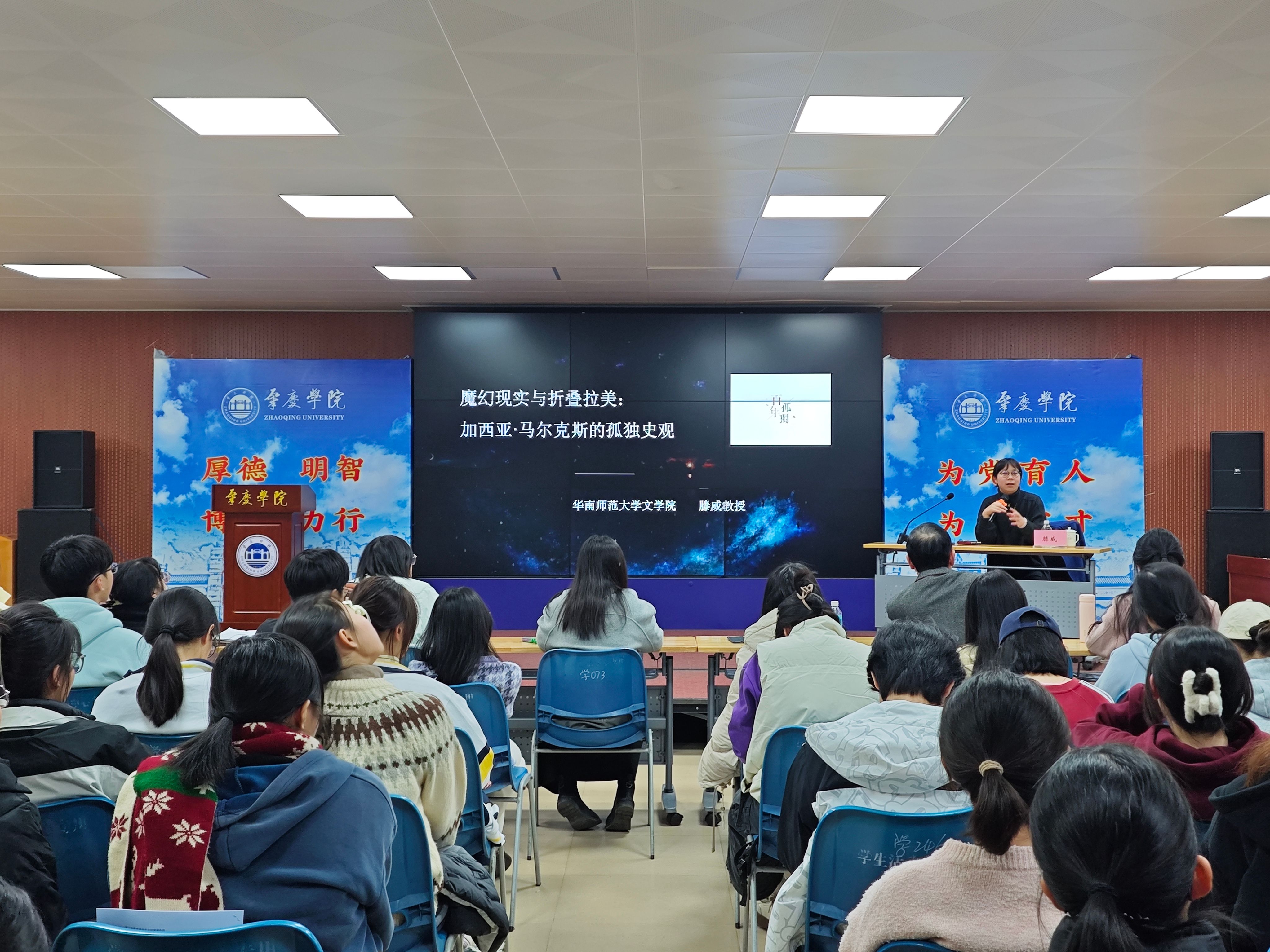 本网讯 12月24日,华南师范大学文公司教授滕威莅临公司作题为《魔幻现实与拉美孤独——重读<百年孤独>》的讲座。公司副经理陈爱香出席、主持讲座,伟德国际1946亚洲版党委副书记胡海鹏及师生代表出席出席、参加。