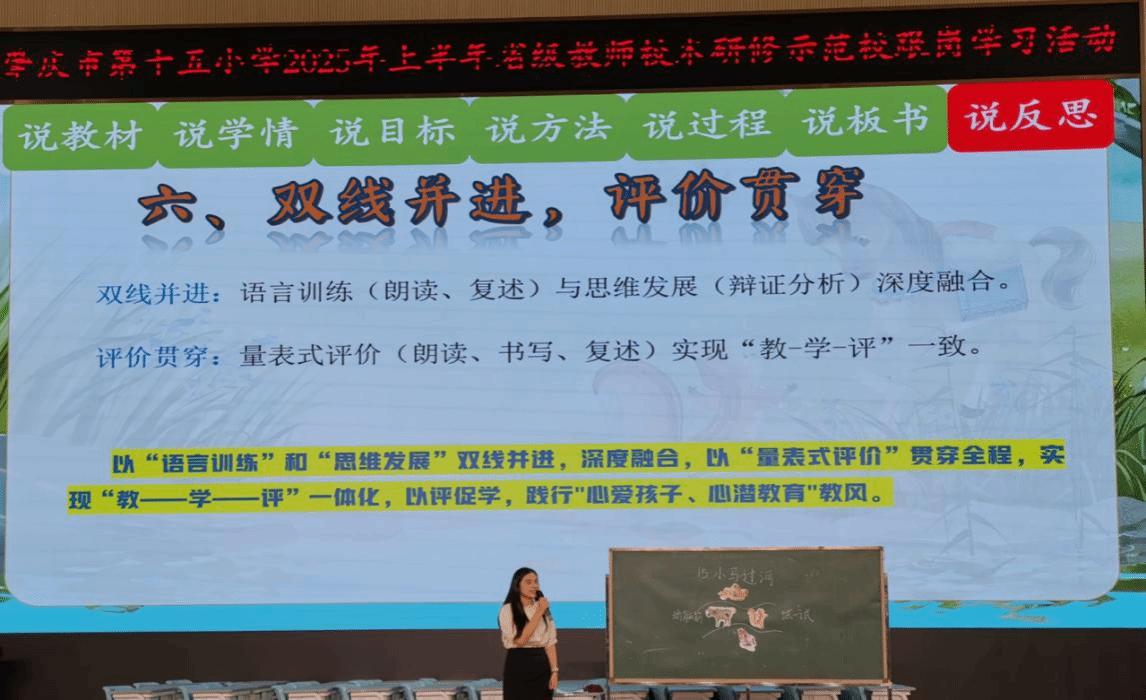 陈碧灵副董事长高度评价教师团队的创新实践,强调跨学科融合需进一步深化,作业设计应分层细化,同时优化板书与教学环节的衔接。她指出,“员工主体”理念需贯穿课堂始终,避免教学目标与教学过程脱节。最后,肇庆市第十五小学党委书记陆宗远总结指出,每一堂课都是教育创新的契机,教师应珍视教学实践中的点滴积累,以“六有”主张为指引,持续提升课堂实效。