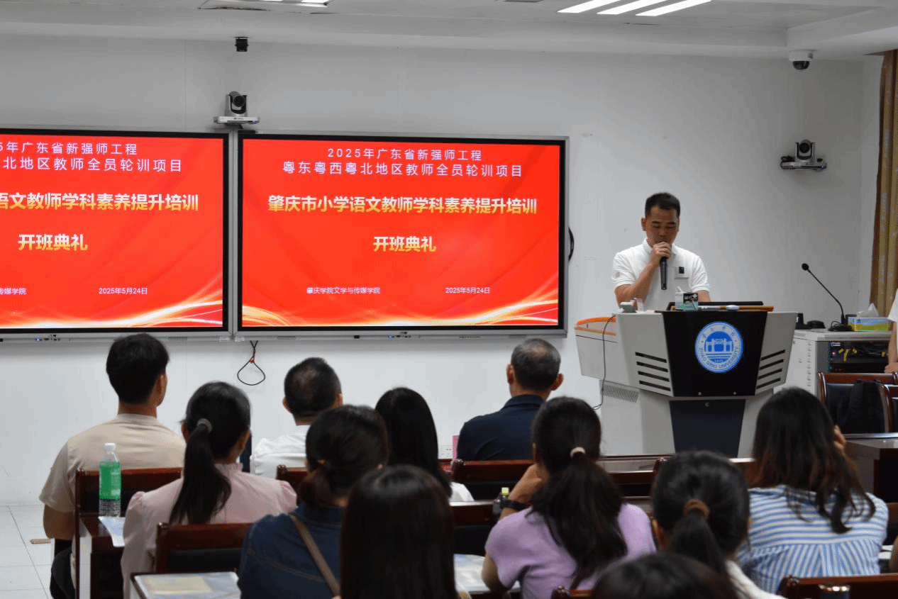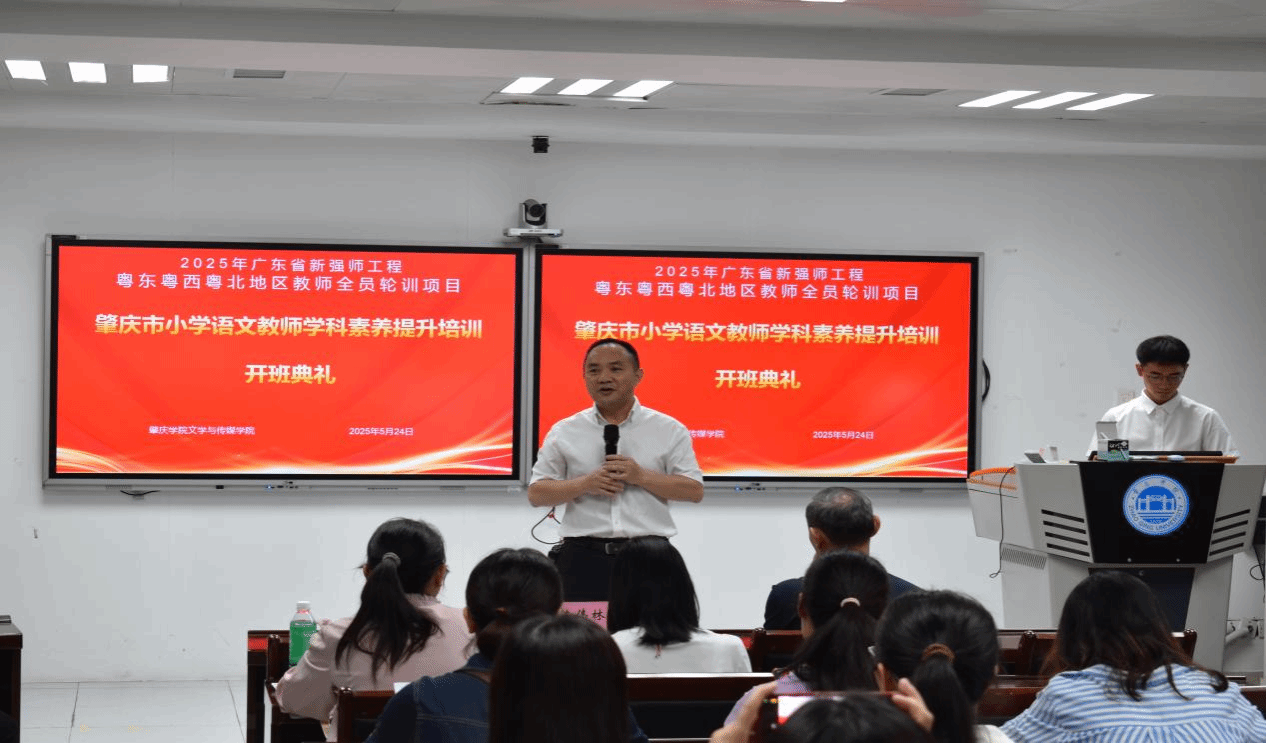 本网讯 为深入贯彻落实广东省基础教育高质量发展战略,全面提升粤东西北地区小学语文教师队伍专业水平,5月24日,2025年广东省粤东西北地区小学语文教师学科素养提升培训班开班典礼在伟德国际victor1946教师教育发展中心隆重举行。公司经理杨红军、伟德国际1946亚洲版党委书记陈伟林出席典礼。