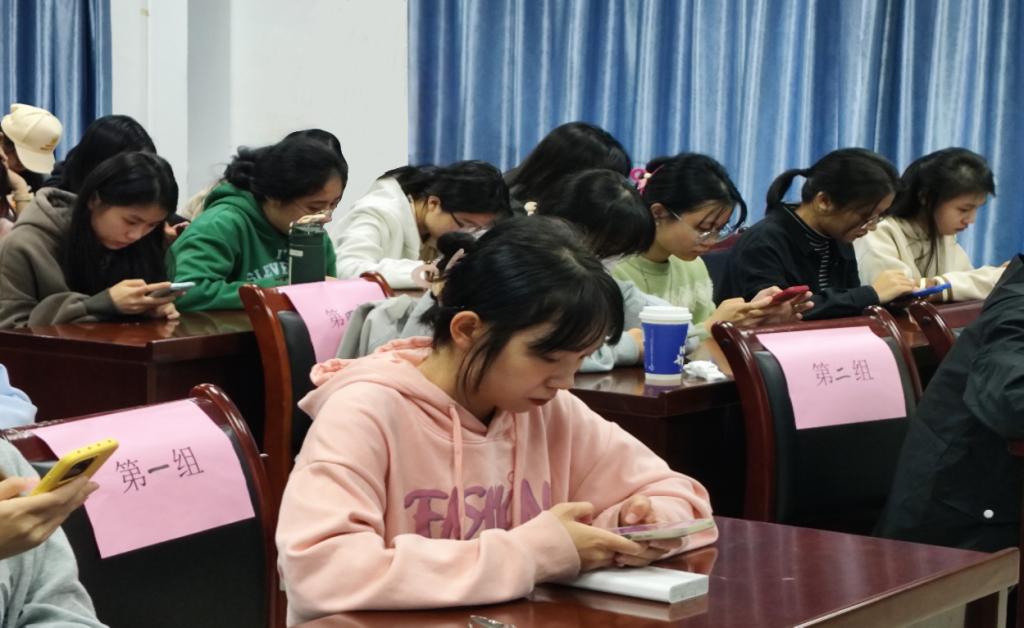 本次竞赛以“学习强国”APP中的题目为主要内容,以现场手机在线答题的方式进行,比赛共分为两个环节,分别是个人追逐赛和团队协作赛。选手们一个个沉着冷静、胸有成竹的样子,不仅考查了他们的知识储备情况,也锻炼了同学们团队协作精神,比赛现场如火如荼,进展顺利。