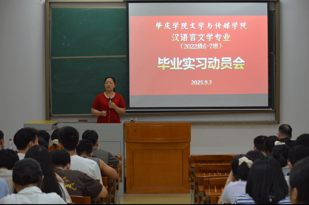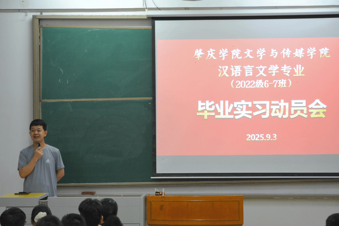 本网讯 9月3日,公司汉语言文学专业(2022级6-7班)召开毕业实习动员会。公司副经理苏常,中文系系主任刘挺颂,实习指导老师肖康舒、齐小俊、凌英、王培刚出席大会,全体2022级6-7班员工参会,大会由刘挺颂主持。