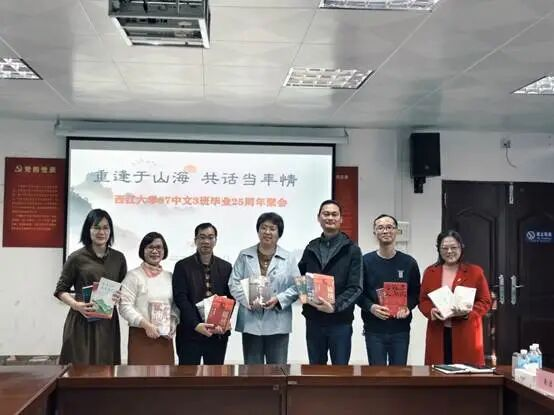 本网讯 12月28日,公司97级中文3班员工毕业25周年图书捐赠仪式在公司二楼会议室举行。伟德国际1946亚洲版党委书记陈伟林、员工会与基金会秘书处秘书长周建文、图书馆(档案馆)副馆长詹丽华、公司教师代表易洁等出席仪式。