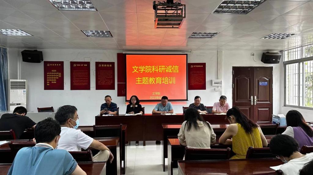 6月25日下午文公司科研诚信主题教育培训于文公司院楼210举行,公司领导班子出席,培训由文公司副经理苏文兰主持,全体教职工参与