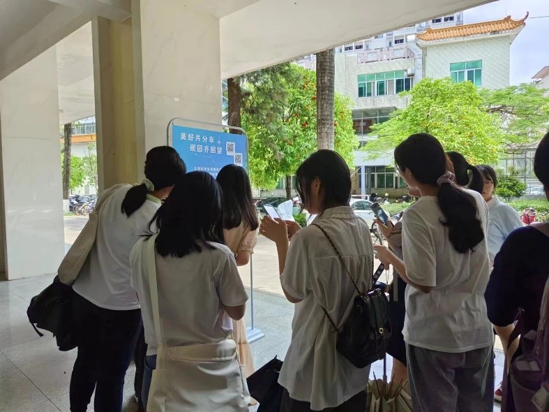 活动前期工作人员将展板放置活动地点,毕业生通过展板上的问卷星报名,用照片的形式分享砚园的景色;一起抒发毕业感想;一起畅谈自己的青春与未来;一起为非毕业生送去自己珍贵的回忆和真挚的祝福。