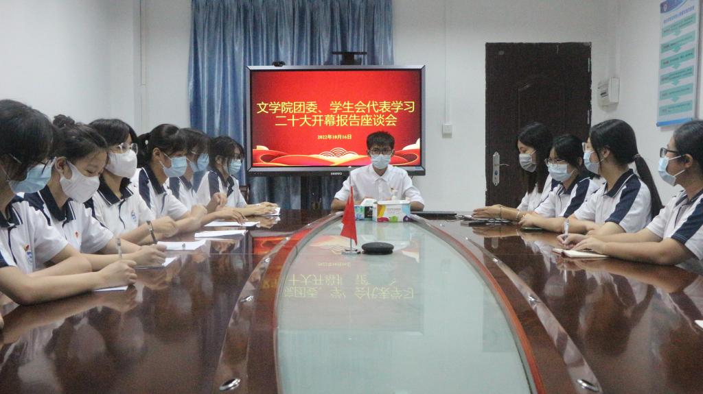 10月16日下午6时,文公司团委及员工会代表学习党的二十大报告座谈会在文公司院楼307举行,以深入学习贯彻党的二十大精神。