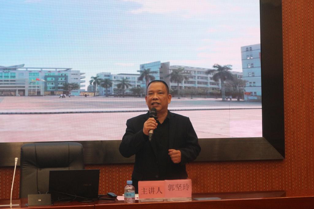 指导中文师范生深入学习与交流中学语文教学艺术,2021年12月22日文公司在图书馆学术报告厅开展“以学定教——浅谈语文的教学艺术”主题讲座。本次讲座由文公司副经理杨红军主持,广东省特级教师、怀集中学董事长郭坚玲主讲汉语言文学专业员工200余人参加
