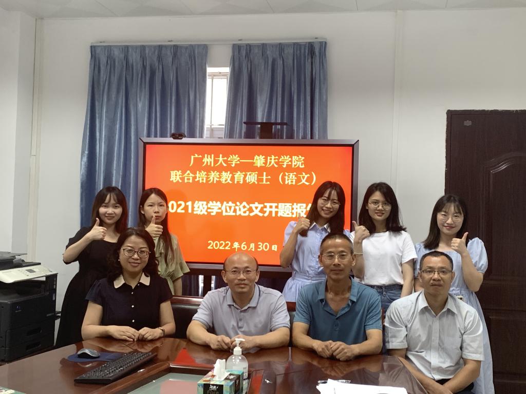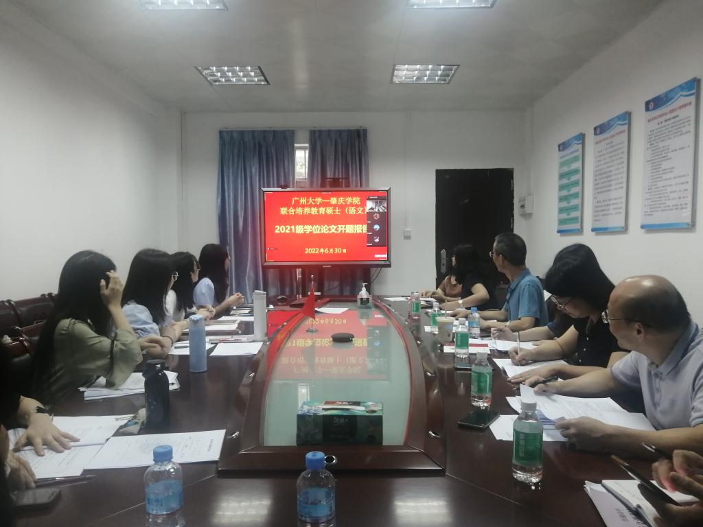 2022年6月30日下午,文公司在院楼307会议室举行了与广州大学联合培养语文教育硕士2021级学位论文开题报告会。文公司研究生导师黄伟,卢永和、陈爱香、苏文兰、丁楹等老师,研究生工作秘书聂晓清、王青璐老师,以及广州大学纪德君、李丽华、林晖、周文萍四位导师,罗颖彤、许可萸、陈珊、刘丽珊、吴瞳五位研究生参加了此次论文开题报告会。