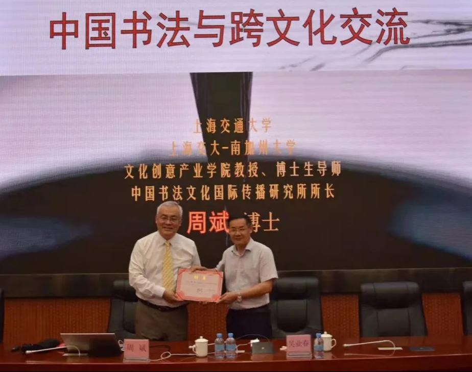 2021年5月19日上午10点许,上海交通大学——南加州大学文化创意产业公司教授、博士生导师、中国书法文化国际传播研究所所长、联合国总部新闻部NGO组织 “国际书法联合会”主席、“书法小联合国”创始人和终身主席周斌博士莅临公司,并对文公司书法教学工进行指导。