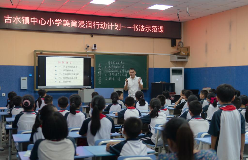 本次书法示范课,是伟德国际victor1946——广宁县古水镇中心小学美育浸润行动计划的一个环节。为深入贯彻落实美育浸润行动计划的精神,本学期文公司派遣3名优秀书法学专业员工到古水镇中心小学进行教育实习,与古水镇中心小学的师生一起建立和完善书法美育浸润课堂。通过示范课,可以更好地培养实习生的书法课堂教学技能,以适应小学书法教学的要求,完成书法教学任务。