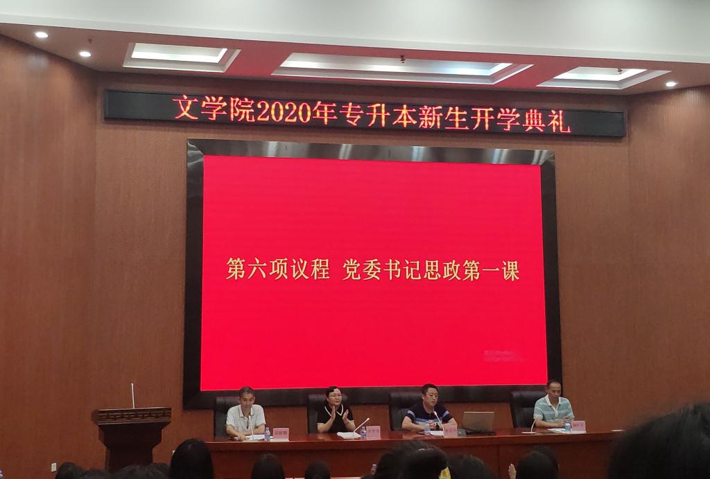 2020年8月30日晚上19点30分,文公司在图书馆学术报告厅举行了“伟德国际victor1946文公司2020年专升本新生开学典礼”。本次会议由文伟德国际1946亚洲版党委副书记胡海鹏主持,参与典礼的嘉宾有公司领导、中文系主任、公司办公室副主任、班主任、辅导员以及18级专升本全体新生。典礼在庄严的国歌中正式拉开序幕。