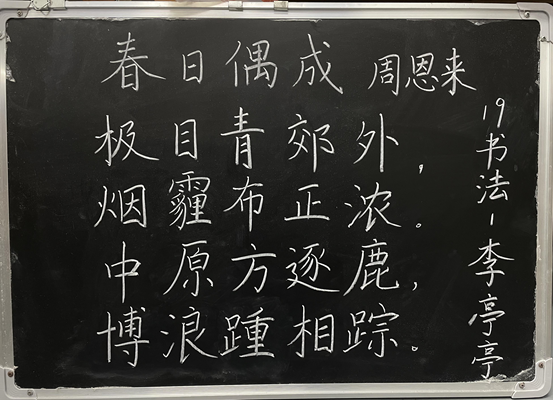 国砚广场上的黑板字大展持续至12月2日,未来几周还将于文公司楼橱窗等场所分期展出文公司学子的钢笔字优秀作业。