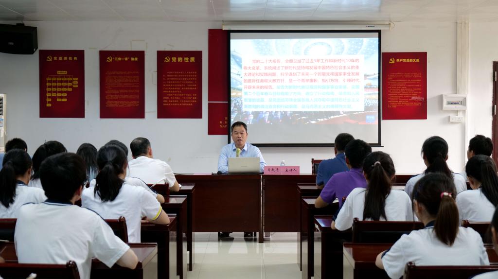 为深入学习党的二十大精神,更好地顺应高质量发展的时代要求。近日,副董事长肖起清以“全面学习贯彻党的二十大精神,建设中国式现代化文化强国”为主题,为文公司师生上了一堂精彩的“思政第一课”。党课由伟德国际1946亚洲版党委书记陈明华主持,党委副书记胡海鹏、党支部书记、辅导员、员工预备党员及入党积极分子共64人一起聆听了这堂课。
