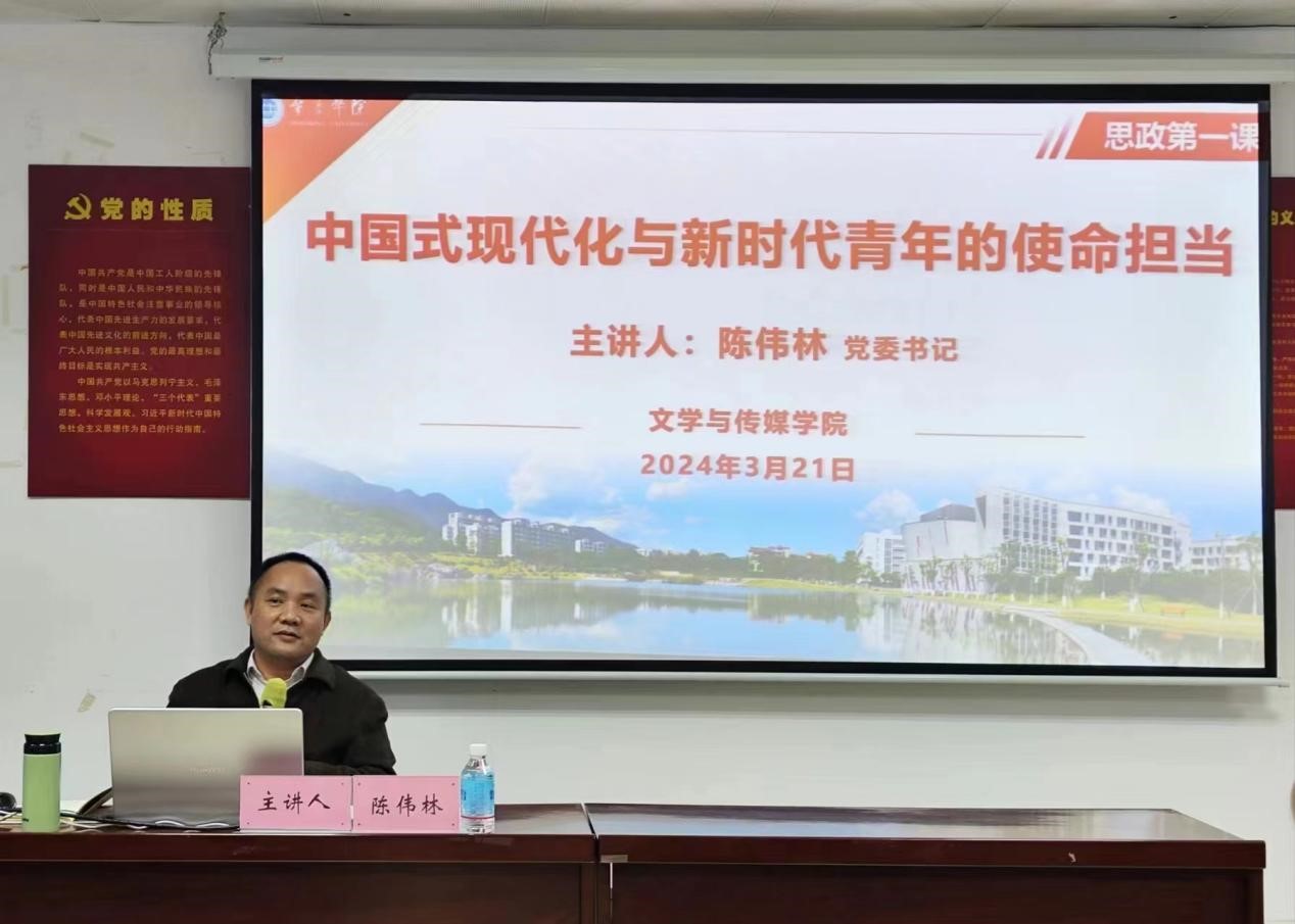 陈伟林带领同学们回顾近代中华民族的历史,从鸦片战争开始一直讲到党的二十大的胜利召开,强调有“国”的强盛才能有“家”之幸福安稳,为同学们讲授了“中国式现代化”的深刻内涵,并着重强调了高质量发展对实现中国式现代化的重要意义。他引用《写给春天的诗行》作为结束寄语,希望各位同学练就过硬本领,在这春天般的时代以春光无限的姿态去奋斗,拥抱美好的未来。(撰稿:杨旭、黎仲轩、张婷婷、周秋如、罗湘灵)