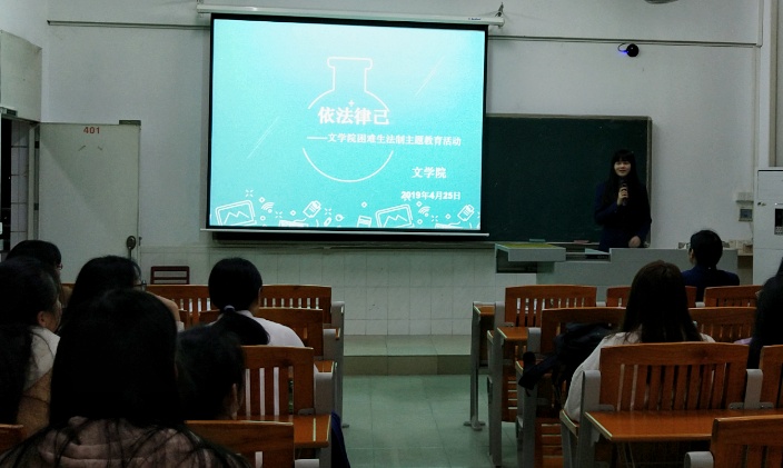出席本次活动的人员有范盈盈、朱鑫老师,银行代表人员,以及全体2018级困难员工们。活动开始范盈盈老师发表讲话,她呼吁同学们要知法、懂法、守法。其次银行代表人员发言,她表示法律对人有一定的约束力,它会更规范人的行为,使人能更容易,更好的适应社会的发展。他希望同学们能做到诚信贷款,按时还款,做一个依法律己的人。