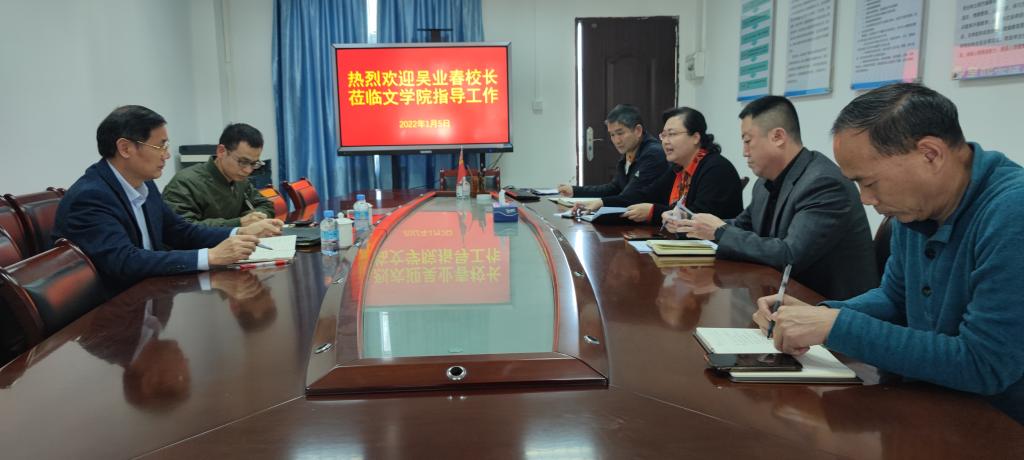 吴业春认真听取了文公司班子的工作汇报,充分肯定了文公司的办学成果,并对文公司在团队建设、专业建设及教学研究等方面的积极探索给予了高度评价。